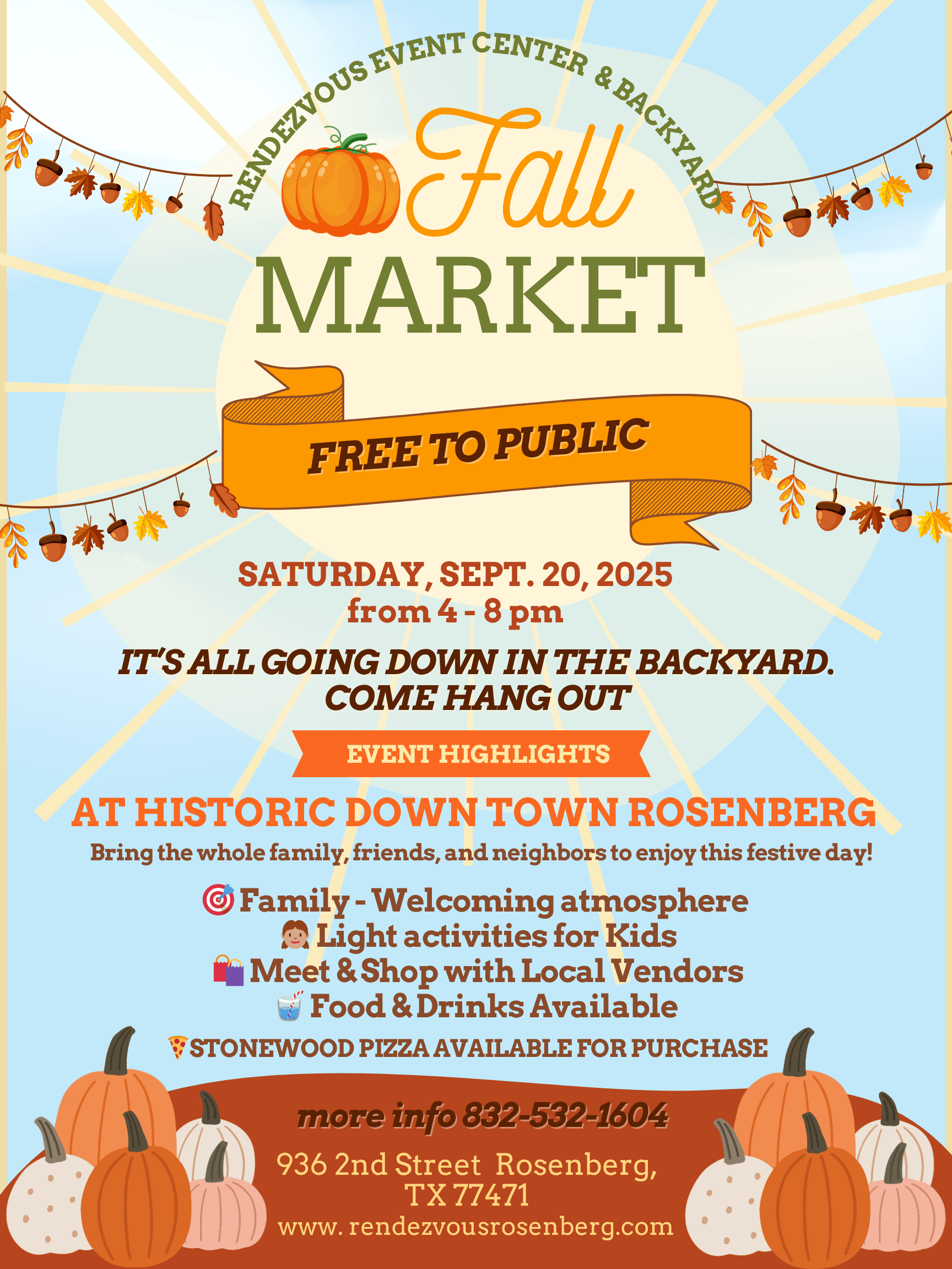 Please join us Saturday, Sept 20, 2025 4:00pm to 8:00pm FREE TO PUBLIC Rendezvous Event Center- 936 2nd St Rosenberg , Tx 77471